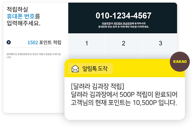 고객님이 휴대폰번호만 눌러주시면 바로 간편하게 포인트적립!