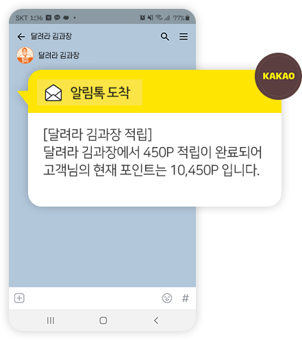 적립즉시 고객에게 바로 카카오알림톡이 (6,000건 제공) 발송됩니다.