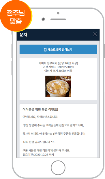 추가 금액 없이 이벤트도 특별하게 문자로 모바일 쿠폰을 보내보세요.